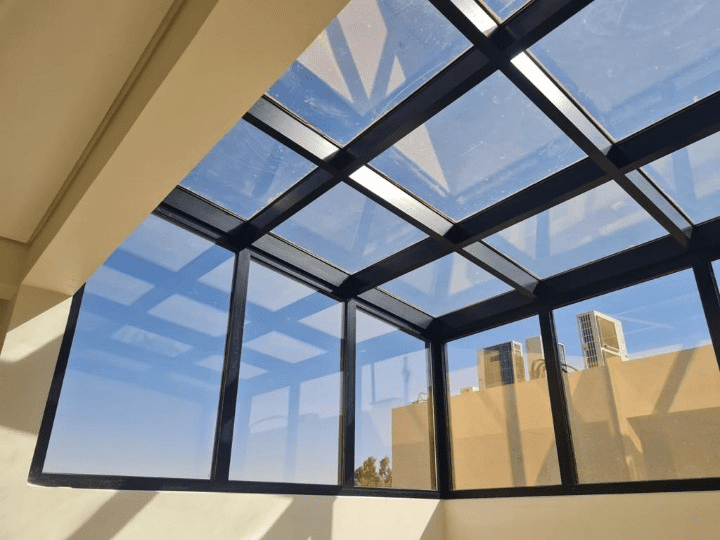 Therefore, Granada Aluminum Factory has provided high technical capabilities to implement the different types and shapes of skylights by using special aluminum profiles of high thicknesses that suit all required sizes.